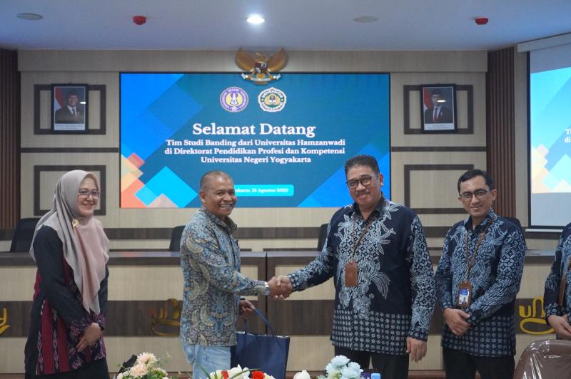 Yogyakarta, 13 Agustus 2025 – Direktorat Pendidikan Profesi dan Kompetensi (DPPK) Universitas Negeri Yogyakarta (UNY) menerima kunjungan rombongan dari Universitas Hamzanwadi, Lombok Timur, pada Rabu (13/8). Kegiatan ini dilakukan dalam rangka bechmarking , kerjasama strategis terkait kebijakan dan pelaksanaan Program Pendidikan Profesi Guru (PPG) bagi guru tertentu dan calon guru, kerjasama di bidang penelitian, pengabdian kepada masyarakat PkM sekaligus penandatanganan kerja sama.
